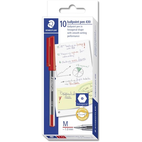 STAEDTLER STICKS 430 RED MEDIUM BALLPOINT PEN ORDER IN MULTIPLES OF 10 CVC