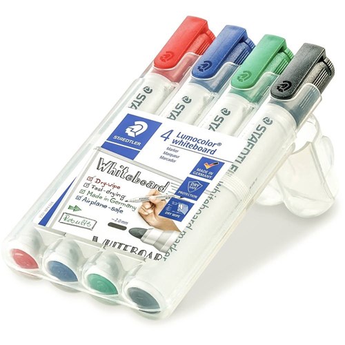 Staedtler Lumocolor Whiteboard Marker 351 Bullet Point BRIGHT Wallet of 6 Assorted Colours