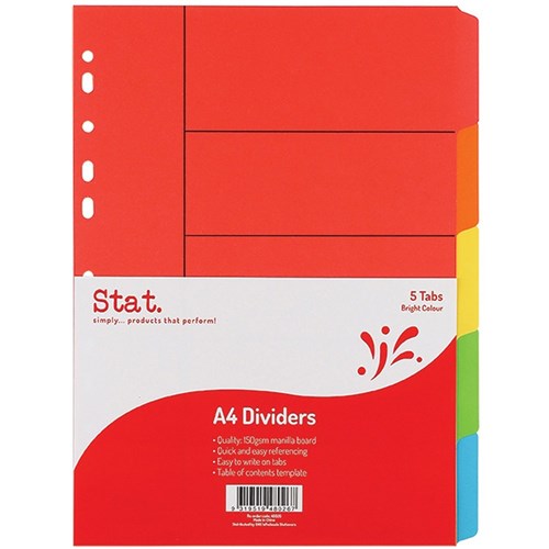 STAT DIVIDER A4 MANILLA BRIGHT Assorted 5 Tabs