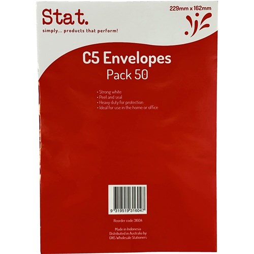 Stat Peel And C5 Seal Envelope Heavy Duty White Pack of 50