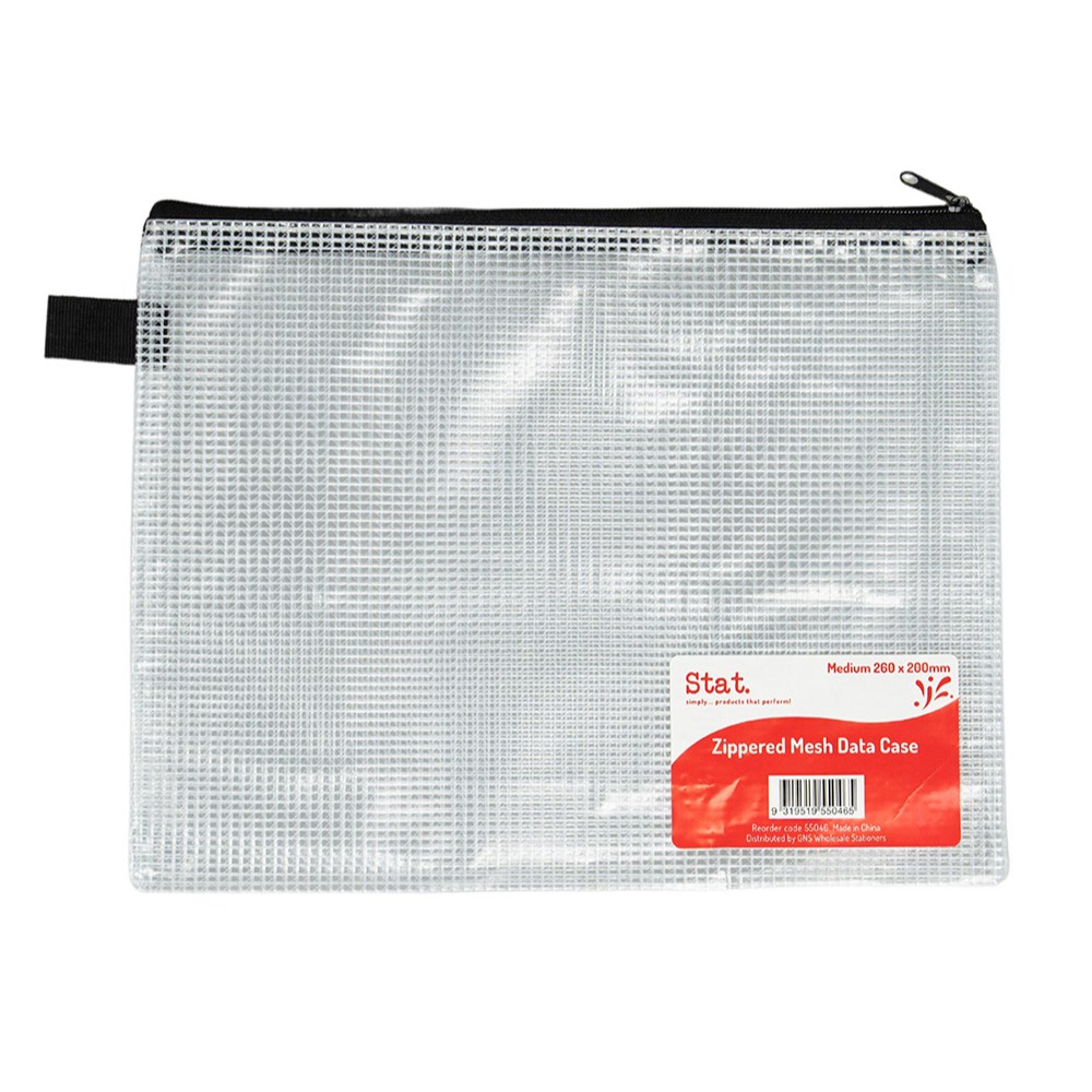 Robust PVC re-inforced mesh data case with strong sewn zip closure