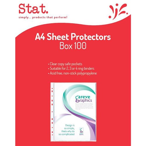 STAT SHEET PROTECTORS A4 CLEAR PACK OF 100 40 MICRON