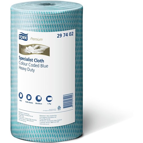 TORK SPECIALIST PREMIUM CLOTH 50cmX30cmX45m Heavy Duty Blue CTN = 4 ROLLS