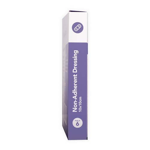 Non-stick dressing minimises adherence to wound.