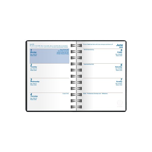 Upward Nurses Wire-O Diary A7 Week To View Black