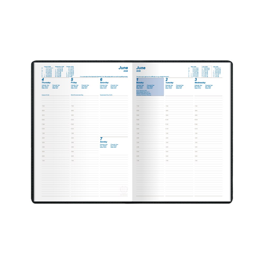 Upward Standard Diary B5 Vertical Week To View Black