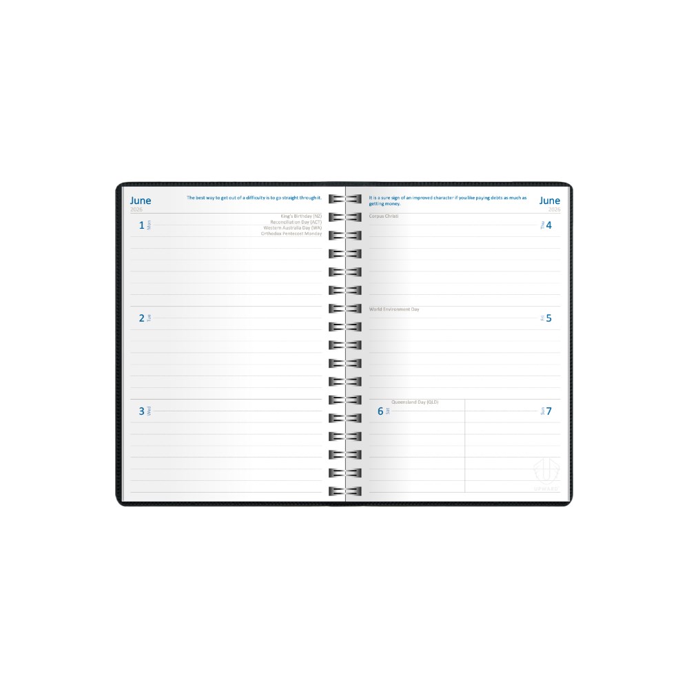 Upward Superior Wire-O Diary B6 Week To View Black