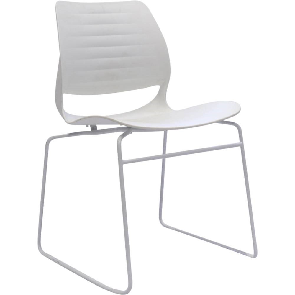Vivid Meeting Chair White Metal Sled Base White Poly Shell
