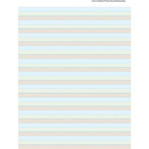 Brown (ground), green (grass), blue (sky) printed lines for learning to write.
