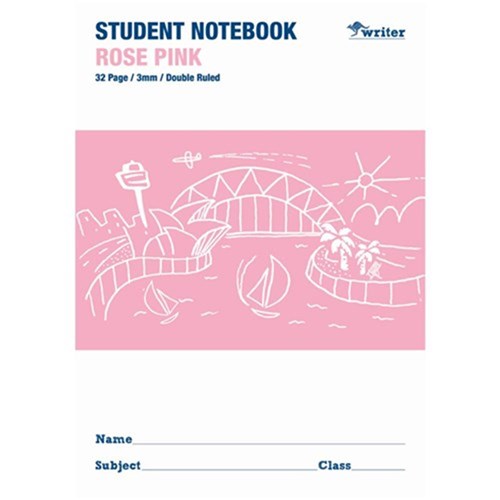 Writer Student Note Book 3mm Double Ruled Rose Pink 32 Page