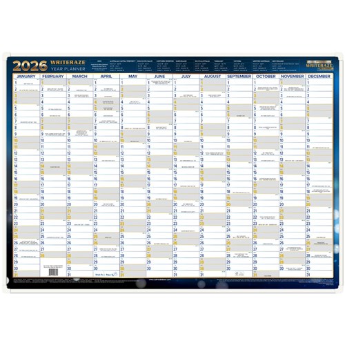WRITERAZE DATED WALL PLANNER 500 X 700mm UNFRAMED LAMINATED BLUE